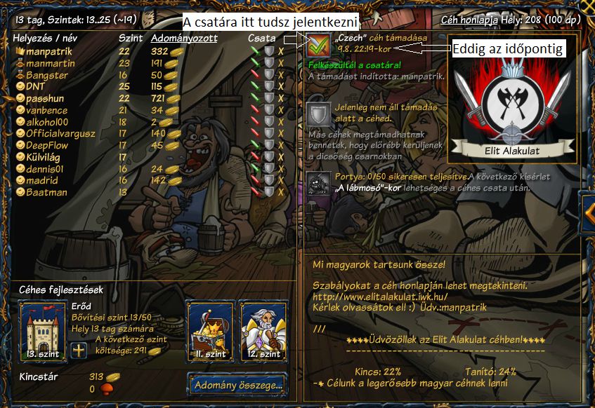 A csatára való jelentkezést a legfelső fehér dobozban találod.